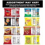 40 Single Serve favorites Lay’s Classic Potato Chips, Crunchy Cheetos, Chili Cheese Fritos, Lay’s BBQ Potato Chips, Original Funyuns, Doritos Nacho Cheese, Original Fritos, and Ruffles Cheddar & Sour Cream Chips